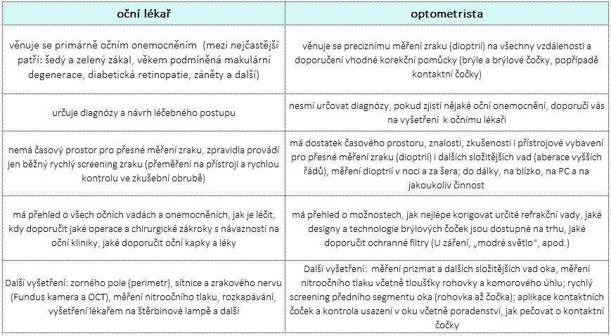 Oční lékař a optometrista nejsou konkurenti, ale navzájem se doplňují a spolupracují.